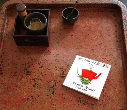The Grand Suffix of Teas A whimsical 7" x 7" book of watercolor drawings briefly describing the quirky lives of 48 outspoken teacups
